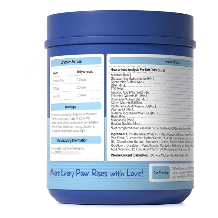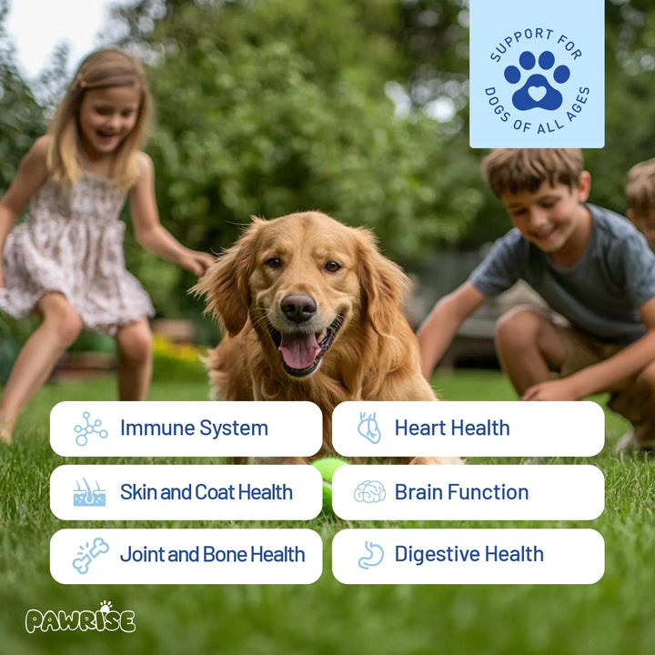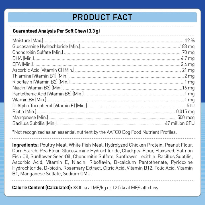 - 🚀 Articulaciones fuertes: La glucosamina y condroitina reducen la rigidez, permitiéndole correr y jugar sin dolor.