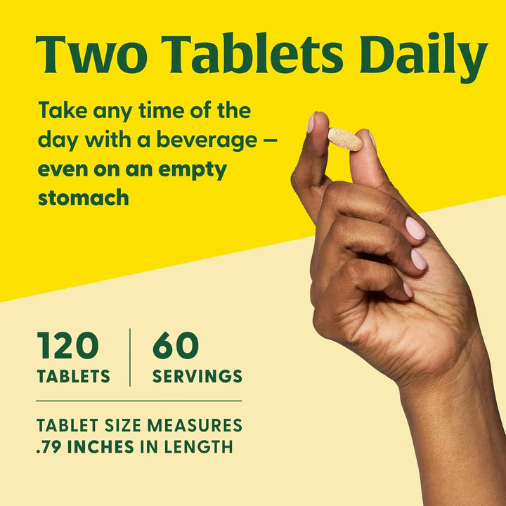 Fácil de tomar: 2 tabletas al día, en cualquier momento, incluso con el estómago vacío ⏱️