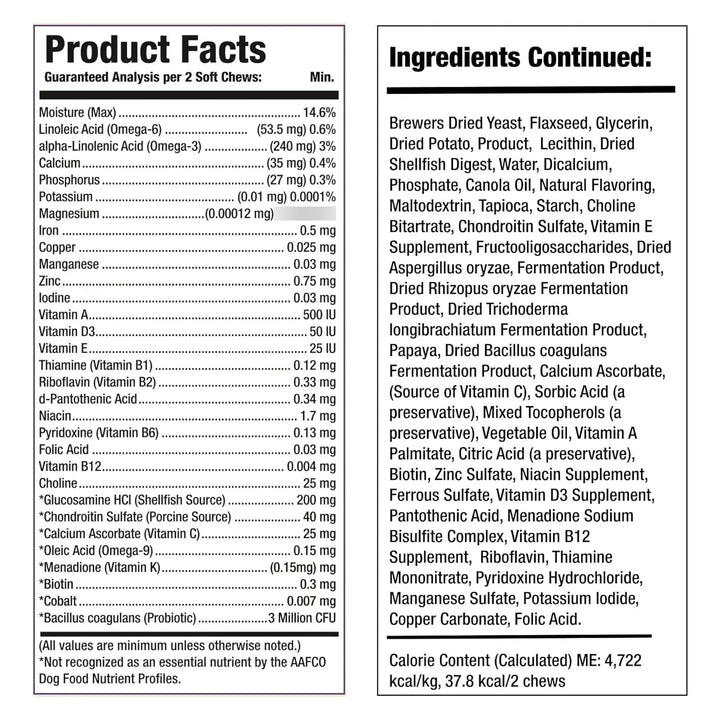 Este producto está diseñado para actuar de manera integral. Los ingredientes trabajan en sinergia para apoyar múltiples sistemas del cuerpo de tu perro. Los probióticos mejoran la digestión, mientras que los omegas nutren su piel y pelaje. La glucosamina y condroitina protegen sus articulaciones, y las vitaminas y minerales refuerzan su sistema inmunológico. Es como un equipo de expertos trabajando para mantener a tu mascota en su mejor versión.