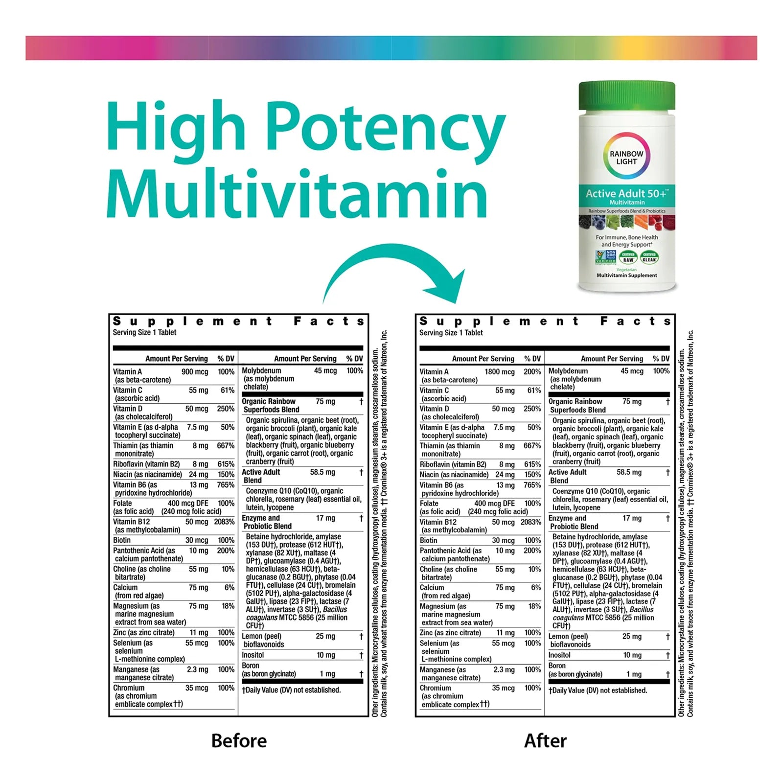 - Potente mezcla de 12 vitaminas y minerales esenciales para adultos mayores de 50 años 😊