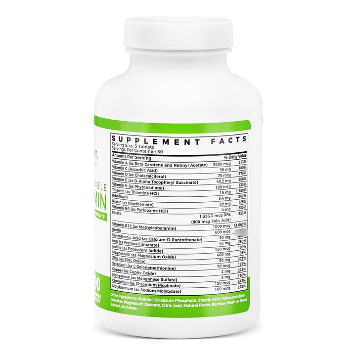 Este multivitamínico está científicamente formulado para compensar las deficiencias nutricionales comunes después de una cirugía bariátrico. El hierro de alta biodisponibilidad ayuda a prevenir la anemia, mientras que la combinación de vitaminas B, vitamina D, calcio y otros minerales esenciales apoya la salud ósea, la función nerviosa y la energía celular. Al ser masticable, asegura una mejor absorción incluso con un sistema digestivo modificado.