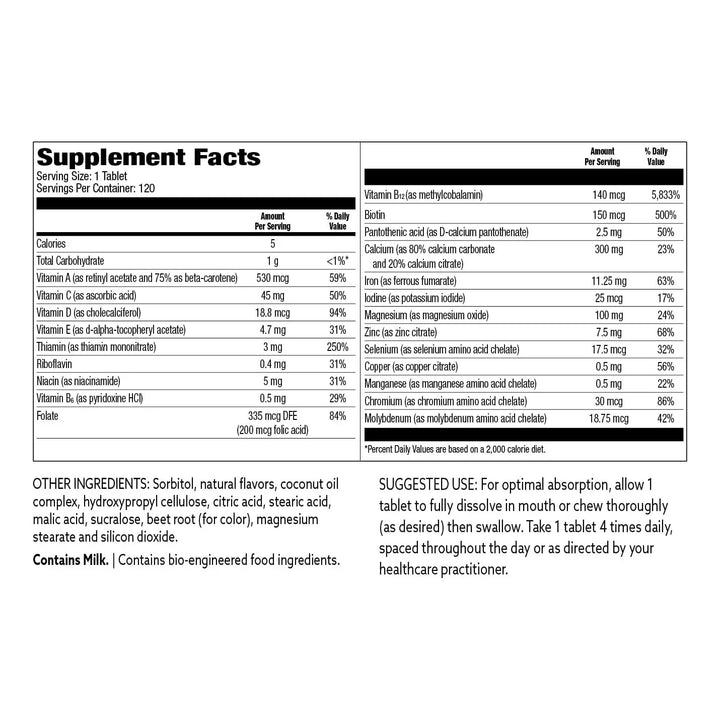 Mientras otros suplementos pueden ser difíciles de digerir o tener sabores desagradables, nuestro producto está recubierto con un delicioso sabor a bayas que hace que tomarlo sea un placer. Las tabletas son pequeñas, fáciles de masticar y se disuelven rápidamente, maximizando la absorción de nutrientes sin causar molestias gástricas.