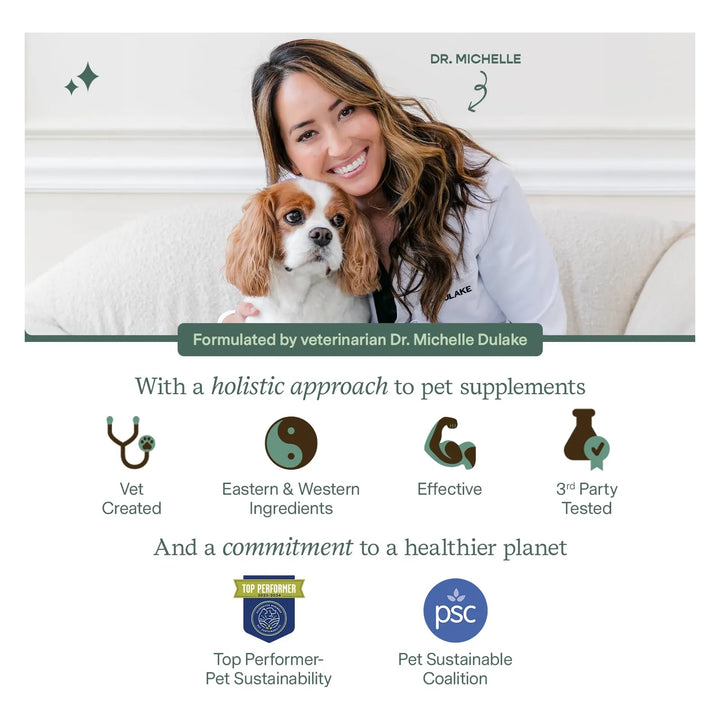 Este polvo multivitamínico actúa desde la primera dosis. Los nutrientes de fuentes enteras son altamente biodisponibles, lo que significa que el cuerpo de tu mascota los absorbe rápidamente. Los probióticos y prebióticos equilibran la flora intestinal, mientras que las vitaminas y minerales fortalecen su sistema inmunológico y mejoran su energía.