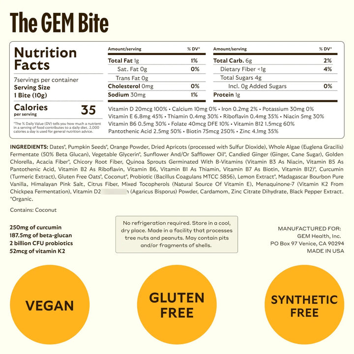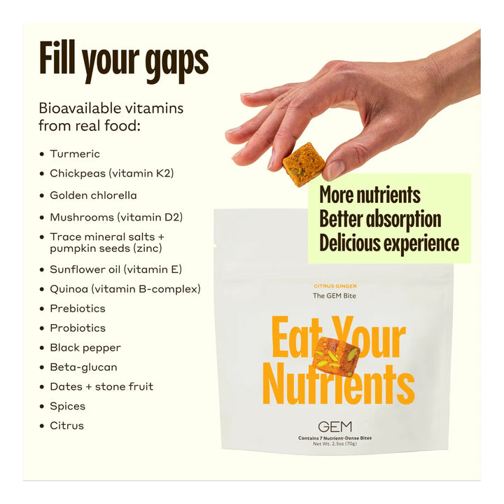 Este no es otro multivitamínico aburrido. Está repleto de más de 20 vitaminas y minerales esenciales, como zinc, vitaminas B, D, K y folato, combinados con superalimentos como cúrcuma y probióticos para una absorción óptima. Apoya tu salud intestinal, fortalece tu sistema inmunológico, mejora la apariencia de tu piel y hasta potencia tu función cerebral. Todo en un solo bocado sabroso, sin náuseas y apto para estómagos sensibles.