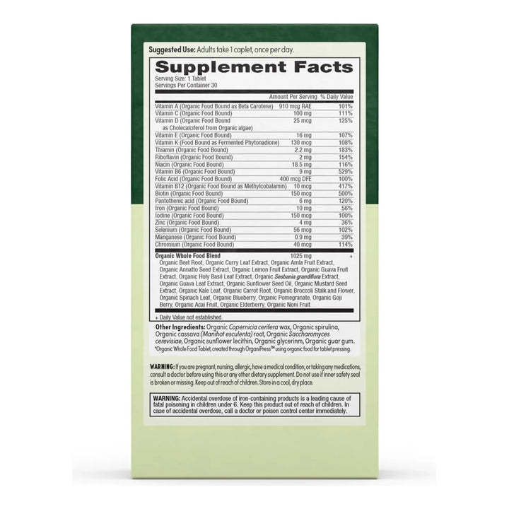 Imagina despertar cada mañana con la energía necesaria para enfrentar tus desafíos, sintiéndote fuerte, saludable y radiante. Nuestro multivitamínico no solo te proporciona los nutrientes esenciales, sino que lo hace de la manera más pura y biodisponible, gracias a nuestra exclusiva Tecnología Organic Food Bound. Cada tableta está elaborada con ingredientes reales como col rizada, remolacha y espinacas, garantizando que tu cuerpo absorba y utilice cada vitamina y mineral de manera óptima.