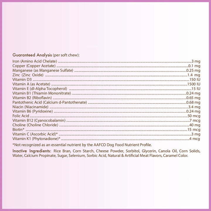 - Perros mayores de 50 lbs: 2 masticables al día (divididos en AM y PM).