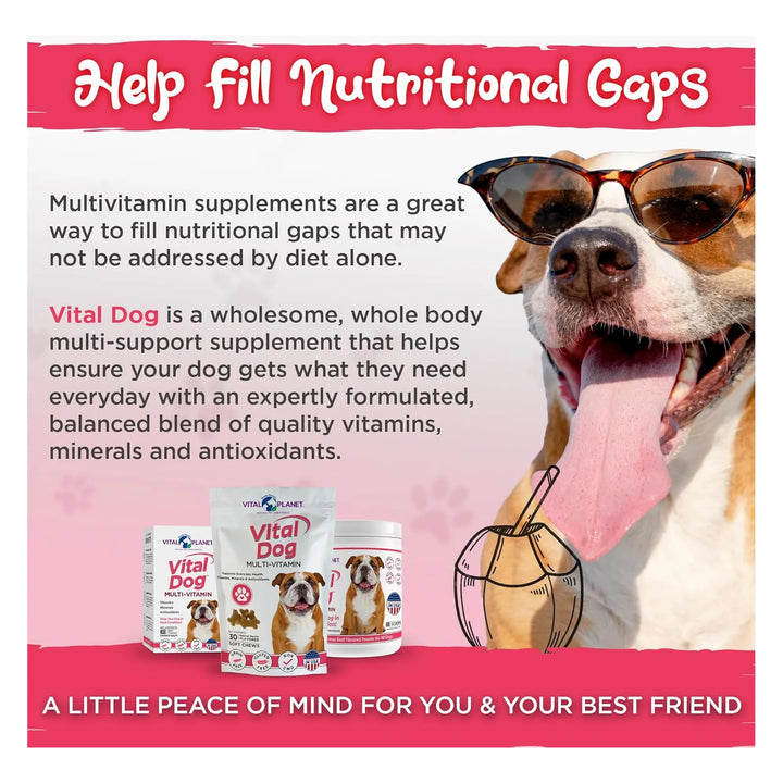 ¿Quieres lo mejor para tu peludo compañero? Imagina un suplemento que no solo complemente su dieta, sino que también le brinde energía, fortalezca su sistema inmunológico y lo mantenga feliz y saludable en cada etapa de su vida. El multivitamínico en polvo Vital Dog de Vital Planet está diseñado precisamente para eso: llenar esos vacíos nutricionales que incluso la mejor comida puede dejar atrás.