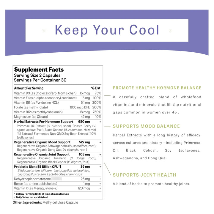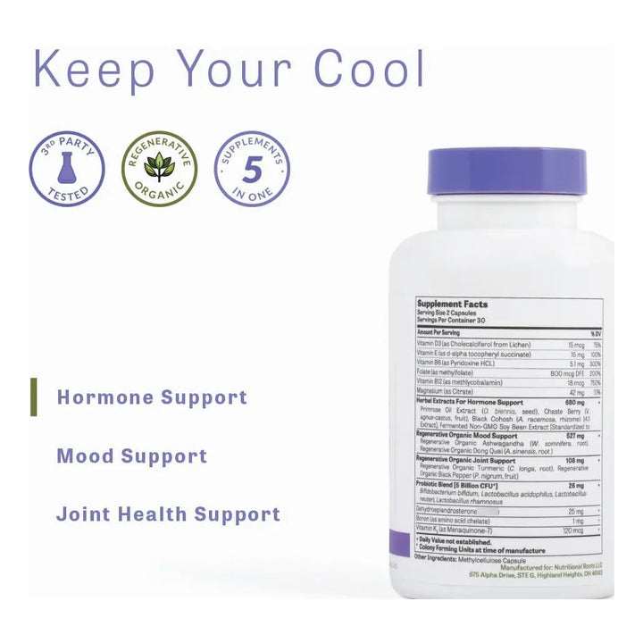 - 🌿 Apoyo emocional y físico: Combate los sofocos y el estrés con ashwagandha y cohosh negro, hierbas clínicamente respaldadas.