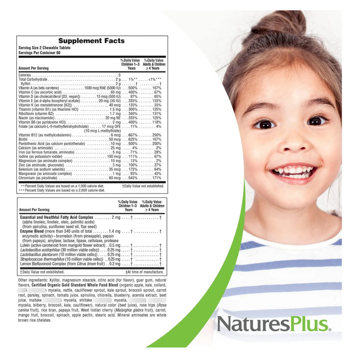 Imagina la tranquilidad de saber que tu hijo está recibiendo vitaminas de alta calidad, probióticos para su digestión y alimentos orgánicos certificados, todo en una sola tableta masticable. Sin gluten, sin azúcar y apto para vegetarianos, este producto está diseñado pensando en las necesidades de los más pequeños.