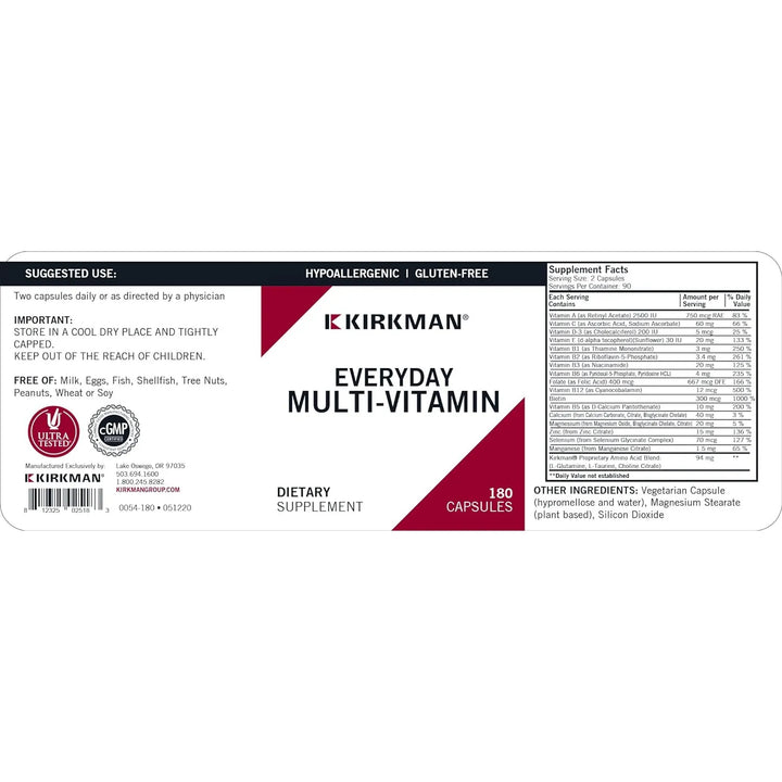 El Multivitamínico Kirkman actúa como un refuerzo nutricional integral. Su mezcla de vitaminas (como B12 para la energía y D3 para la inmunidad) y minerales (como zinc y magnesio) trabaja sinérgicamente para: