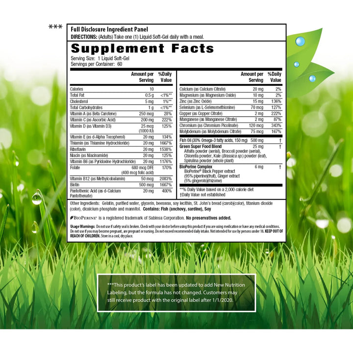 Nuestra fórmula líquida de alta tecnología utiliza un sistema de gel suave que se disuelve rápidamente, liberando nutrientes directamente en tu sistema. La vitamina D3 y los antioxidantes combaten el estrés oxidativo, mientras que los omega-3 nutren tu cerebro y corazón. La mezcla de superalimentos verdes detoxifica y alcaliniza, creando un equilibrio interno óptimo.