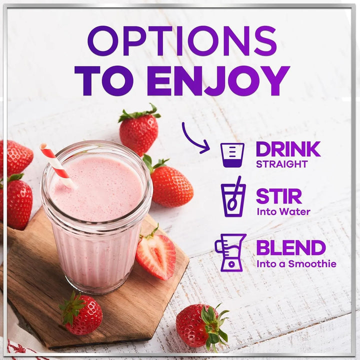 - Toma directamente o mezcla con tu jugo favorito en ayunas