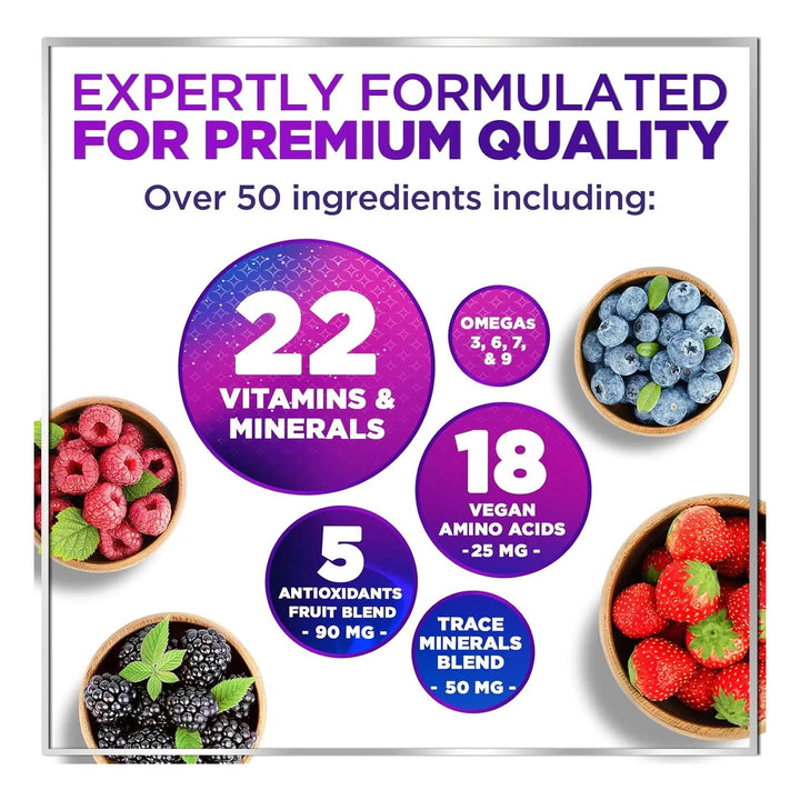 La vida moderna nos exige mucho: estrés, mala alimentación, falta de sueño. Todo esto se refleja en cómo nos vemos y sentimos. Nuestro multivitamínico actúa como un escudo protector, brindándote: