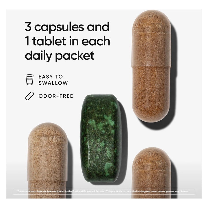 - Dosificación sencilla: Solo 1 tableta y 3 cápsulas al día para simplificar tu rutina. ⏳