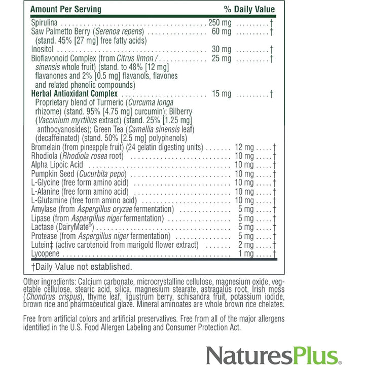 Desde apoyo cardiovascular hasta una piel más saludable gracias a la vitamina E y la espirulina, este multivitamínico actúa en múltiples frentes. La palma enana americana y las semillas de calabaza añaden un refuerzo prostático natural, mientras que los bioflavonoides protegen tus células del estrés oxidativo. No es solo suplemento; es una inversión en tu futuro.