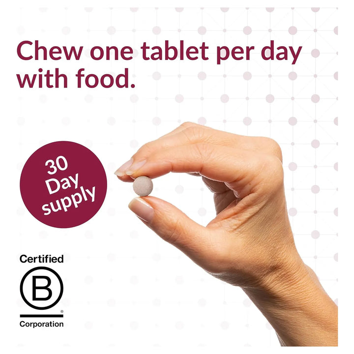 - Mastica completamente una tableta al día, preferiblemente con una comida para mejorar la absorción.