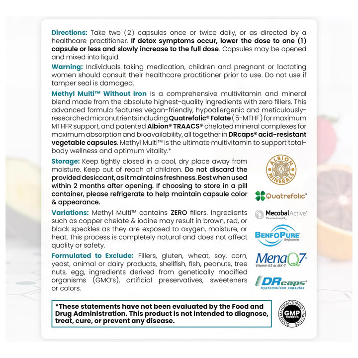 Este no es un multivitamínico cualquiera. Formulado con metilfolato 5-MTHF y metil B12, está especialmente creado para quienes tienen mutaciones MTHFR o COMT, condiciones que dificultan la absorción de nutrientes esenciales. Imagina despertar cada mañana con claridad mental, energía sostenida y la tranquilidad de saber que estás dando a tu cuerpo exactamente lo que necesita para funcionar en su mejor versión.