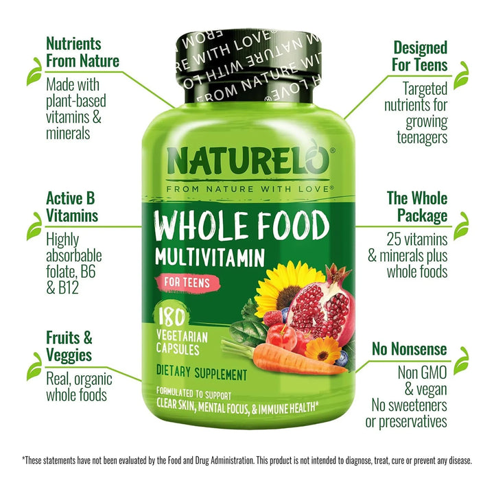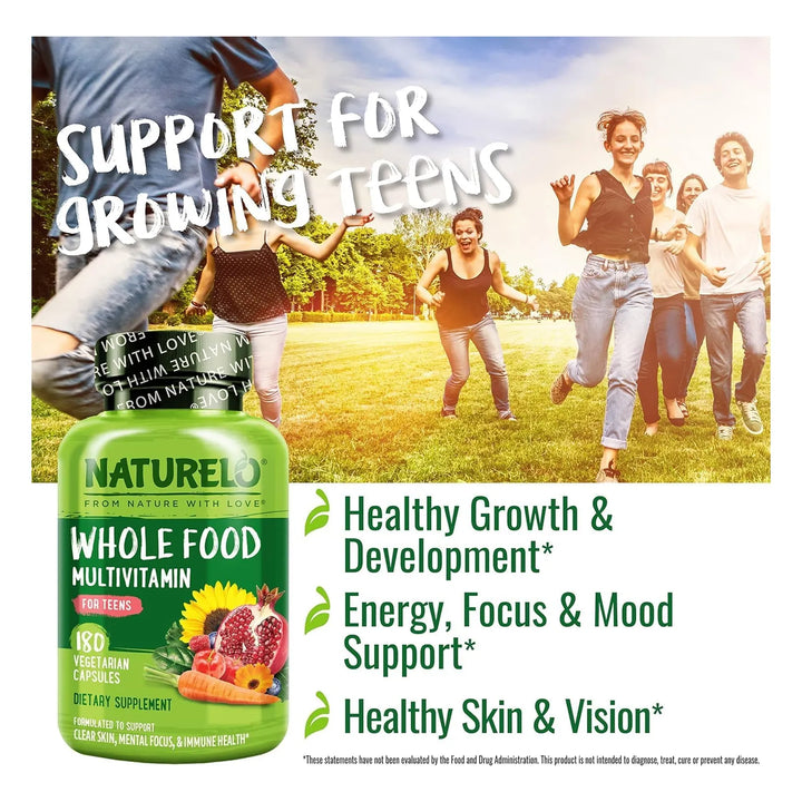 ¿Te preocupa que tu hijo adolescente no esté recibiendo los nutrientes esenciales para su crecimiento y desarrollo? En una etapa donde la energía, el enfoque y la salud inmunológica son cruciales, NATURELO ofrece una solución diseñada específicamente para las necesidades únicas de los adolescentes. Este multivitamínico no solo complementa su dieta, sino que lo hace con ingredientes 100% naturales, libres de químicos dañinos y pensados para un cuerpo en pleno crecimiento.