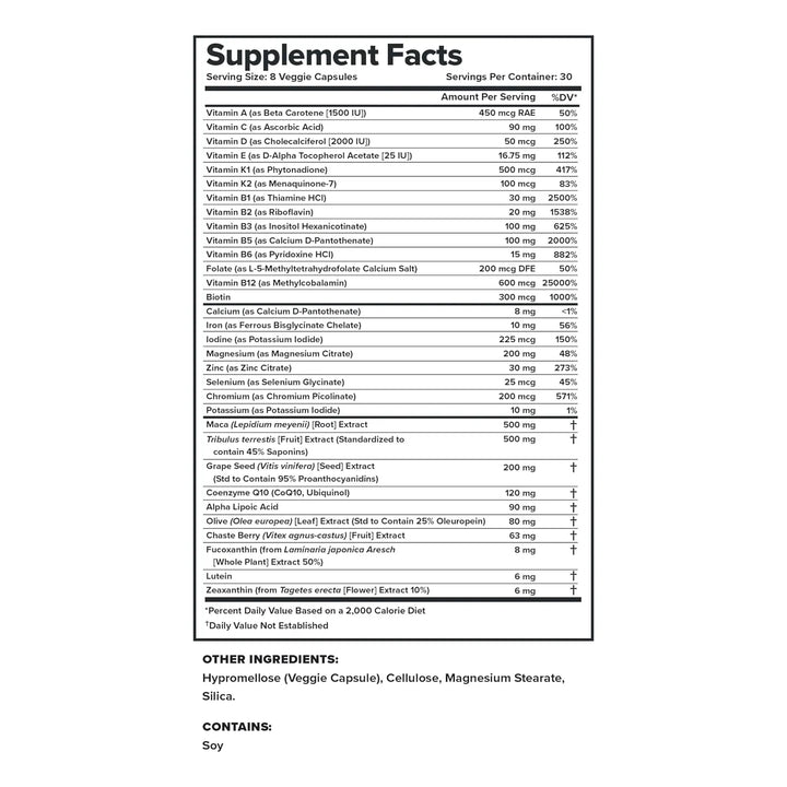 Este suplemento no es solo otra vitamina más. Es una fórmula científicamente desarrollada que combina 21 vitaminas y minerales esenciales con 14 hierbas y aminoácidos de alta calidad. Cada cápsula está pensada para complementar tu dieta, llenando esos vacíos nutricionales que incluso las comidas más balanceadas pueden dejar.