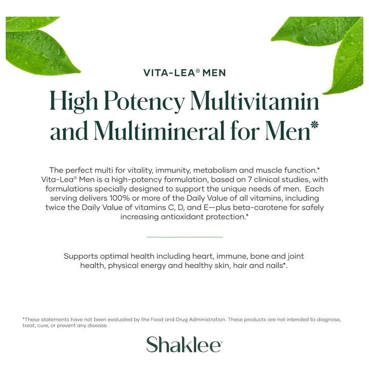 Imagina despertar cada día con la energía y vitalidad que necesitas para conquistar tus metas. El Multivitamínico Vita-Lea Men está diseñado específicamente para hombres como tú, que buscan un apoyo confiable para su salud cardíaca, inmunológica, ósea y articular. No es solo un suplemento, es tu aliado diario para una vida más activa y plena.