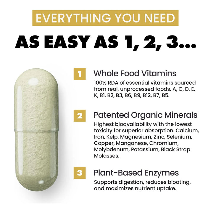- Formulado con 24 vitaminas y minerales orgánicos patentados 🏆