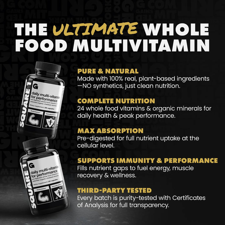 ¿Sientes que tu energía no es la misma de antes? ¿Te cuesta recuperarte después del ejercicio o simplemente mantenerte activo durante el día? No estás solo. La vida moderna, con su ritmo acelerado y dietas poco equilibradas, deja a muchos con deficiencias nutricionales que afectan su bienestar. Pero hay una solución simple y efectiva: Gains in Bulk Square 1, el multivitamínico y mineral diseñado para hombres y mujeres que buscan rendir al máximo.