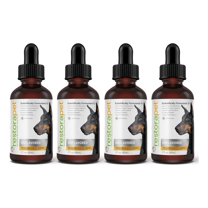 RestoraPet Paquete de 4 multivitamínicos líquidos sin sabor para perros y gatos | Alivio del dolor de la artritis del perro | Vitaminas de cadera y articulaciones para perros | Suplemento