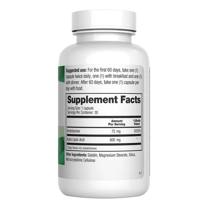 - Ácido Alfa Lipoico 600 mg – Potente antioxidante que regenera los nervios y reduce la inflamación. 💊