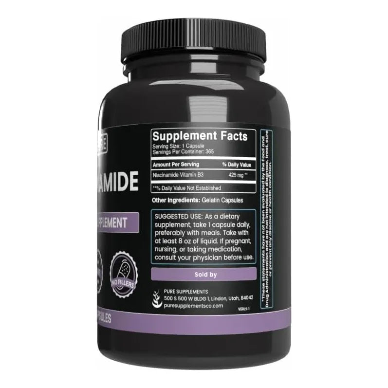Niacinamida Pura 365 Cápsulas Sin Rellenos Vitamina B3 Esencial