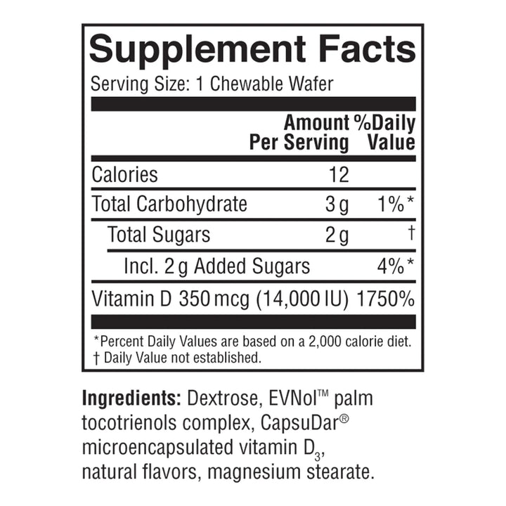 ¿Sientes fatiga constante, debilidad muscular o bajo estado de ánimo? La deficiencia de vitamina D3 podría ser la causa. Presentamos las Obleas Masticables de Vitamina D3 14,000 UI, una solución deliciosa y eficaz para recuperar tu vitalidad. Diseñadas para adultos que buscan un suplemento práctico y potente, estas obleas son tu aliado perfecto para fortalecer el sistema inmunológico, mejorar la absorción de calcio y elevar tu energía.