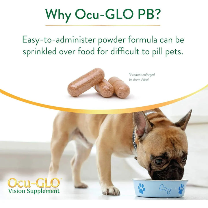 ¿Te preocupa la salud ocular de tu perro o gato? Imagina poder brindarle a tu compañero peludo una visión clara y protegida, incluso en sus años dorados. Con Ocu-GLO Suplemento PB Vision, eso es posible. Este revolucionario polvo está diseñado para integrarse fácilmente en la comida de tu mascota, ofreciendo una combinación poderosa de luteína, omega-3 y antioxidantes que trabajan juntos para mantener sus ojos brillantes y llenos de vida.