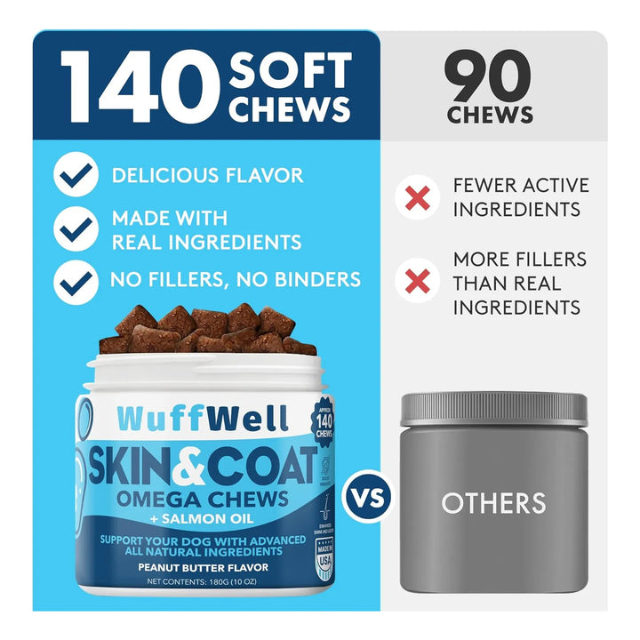 ¿Tu perro sufre de picazón constante, alergias o un pelaje opaco? Imagina verlo feliz, con una piel sana y un pelo brillante que refleja su bienestar. Nuestro Omega 3 Aceite de Salmón para Perros está diseñado para aliviar esas molestias y devolverle la vitalidad que merece. Cada tableta masticable es una dosis de amor y cuidado, formulada con ingredientes premium para resultados visibles.