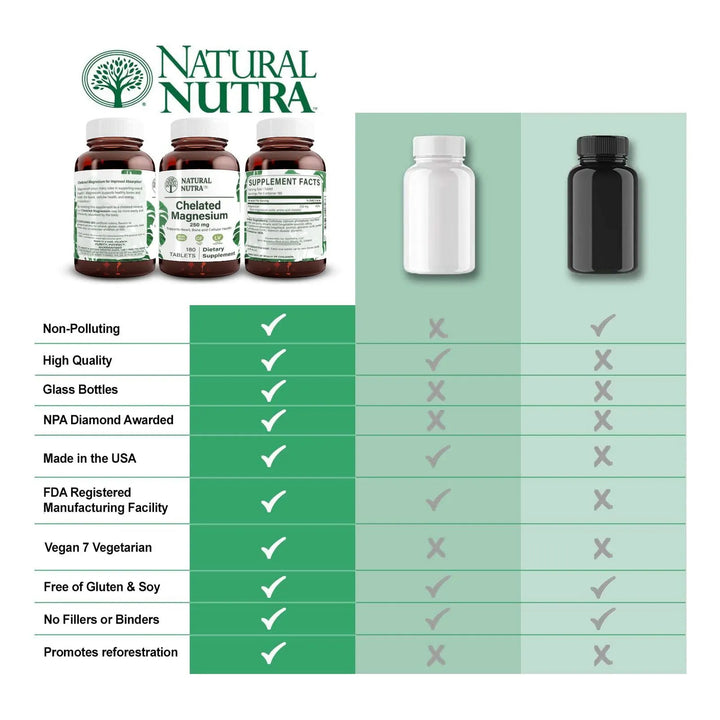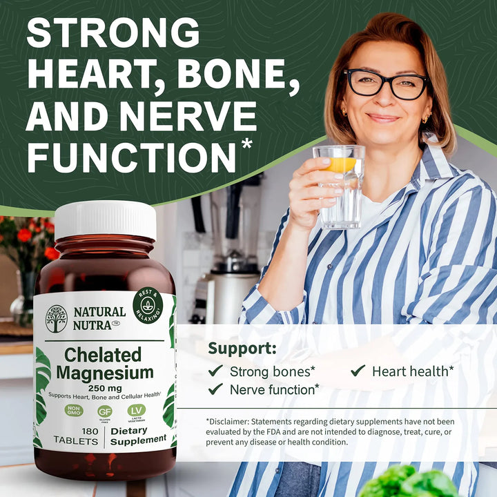 La mayoría de los suplementos de magnesio pasan por tu cuerpo sin ser absorbidos adecuadamente. Nuestra fórmula quelada cambia eso, asegurando que cada dosis de 250 mg sea utilizada eficientemente por tu organismo. Esto significa menos desperdicio y más beneficios para tu salud.