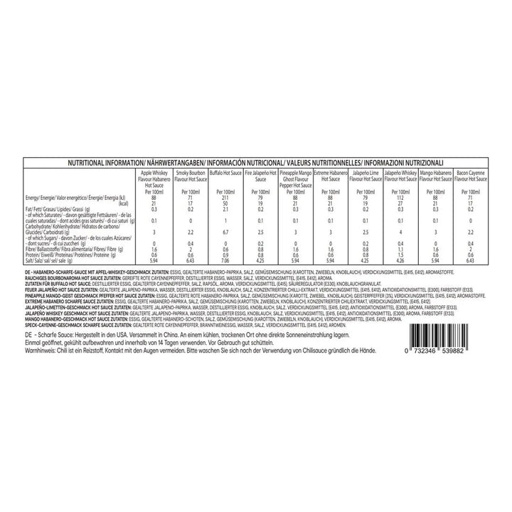 ¿Qué hace especial a estas salsas? Cada botella de 0.84 onzas está creada para despertar tus sentidos. No importa si eres un chef experimentado o simplemente buscas darle un giro a tus platillos, estos sabores exóticos como piña y mango fantasma o whisky de manzana habanero te harán redescubrir el placer de comer. Además, con niveles de picor variados en la escala Scoville, podrás personalizar cada comida según tu tolerancia al calor.