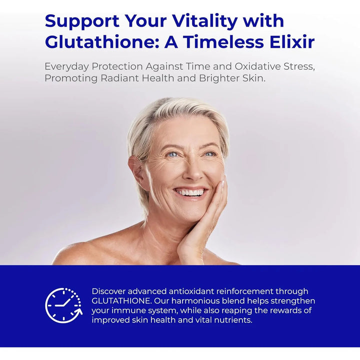 El estrés oxidativo y la falta de nutrientes esenciales pueden afectar tu bienestar sin que te des cuenta. Con nuestra fórmula avanzada, podrás combatir estos problemas desde la raíz. Cada tableta está enriquecida con una mezcla patentada de glutatión, vitamina C y zinc, ingredientes clínicamente probados para apoyar tu salud celular, desintoxicar tu cuerpo y rejuvenecer tu piel. ¿Estás listo para dar el primer paso hacia una versión más saludable de ti mismo?