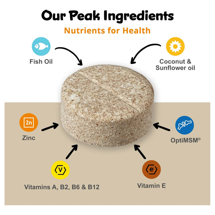 Este suplemento actúa en tres fases: primero, el MSM y los Omegas reducen la inflamación y reparan la barrera cutánea. Luego, las vitaminas y minerales estimulan la regeneración celular. Finalmente, los nutrientes se acumulan en el organismo, previniendo problemas futuros y manteniendo un pelaje vibrante.