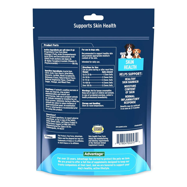 Creado por los mismos fabricantes de Skin Health Free Form™, este suplemento está respaldado por veterinarios y diseñado para actuar desde dentro. No más noches de rascadas interminables ni preocupaciones por irritaciones. Cada cápsula contiene una poderosa combinación de ingredientes clínicamente probados que trabajan en armonía para fortalecer la barrera cutánea, hidratar profundamente y aliviar molestias.