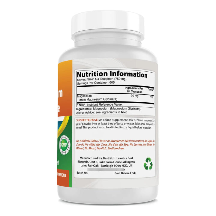 Nuestro producto está diseñado pensando en tu salud y comodidad. Con 605 porciones por envase, tendrás un suministro duradero que te acompañará en tu camino hacia el bienestar. Además, su fórmula altamente absorbible garantiza que tu cuerpo aproveche al máximo cada dosis, sin los molestos efectos secundarios de otros suplementos de magnesio. ¿Por qué conformarte con menos cuando puedes elegir lo mejor?