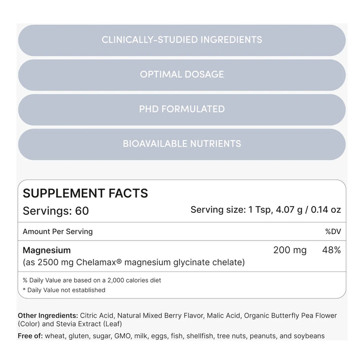 Este suplemento no es solo otro producto en el mercado. Está formulado con Chelamax, una tecnología de quelación que maximiza la absorción del magnesio, asegurando que cada porción de 200 mg trabaje eficientemente en tu organismo. ¿El resultado? Un apoyo integral para tu relajación, recuperación muscular y sueño profundo, sin los molestos efectos secundarios de otras formas de magnesio.