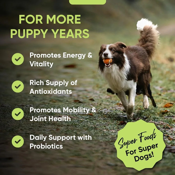 - Fortalece el sistema inmunológico: Los brotes de brócoli (ricos en sulforafano) y la espirulina trabajan juntos para proteger a tu perro de alergias y enfermedades.
