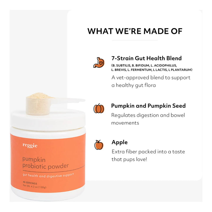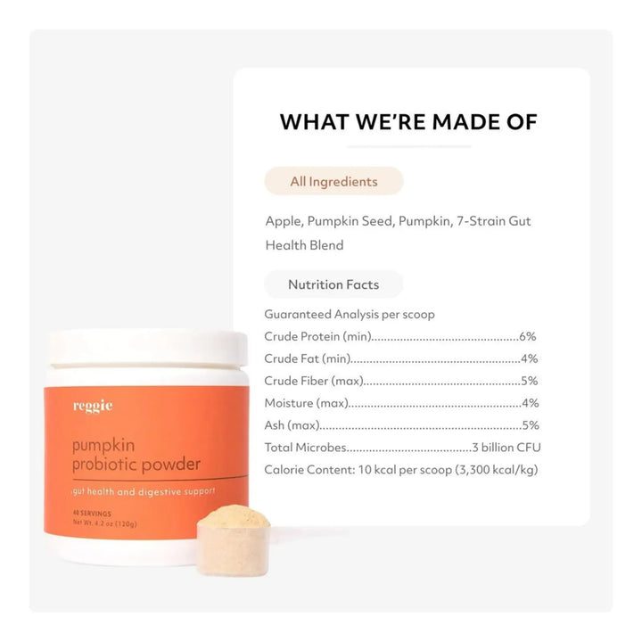 El Polvo Probiótico de Calabaza actúa directamente en el tracto gastrointestinal de tu perro, introduciendo microorganismos beneficiosos que equilibran la flora intestinal. Estos probióticos ayudan a descomponer los alimentos de manera más eficiente, mejorando la absorción de nutrientes y reduciendo problemas como la diarrea o el estreñimiento. Además, la fibra natural de calabaza y semilla de manzana promueve movimientos intestinales regulares y saludables.