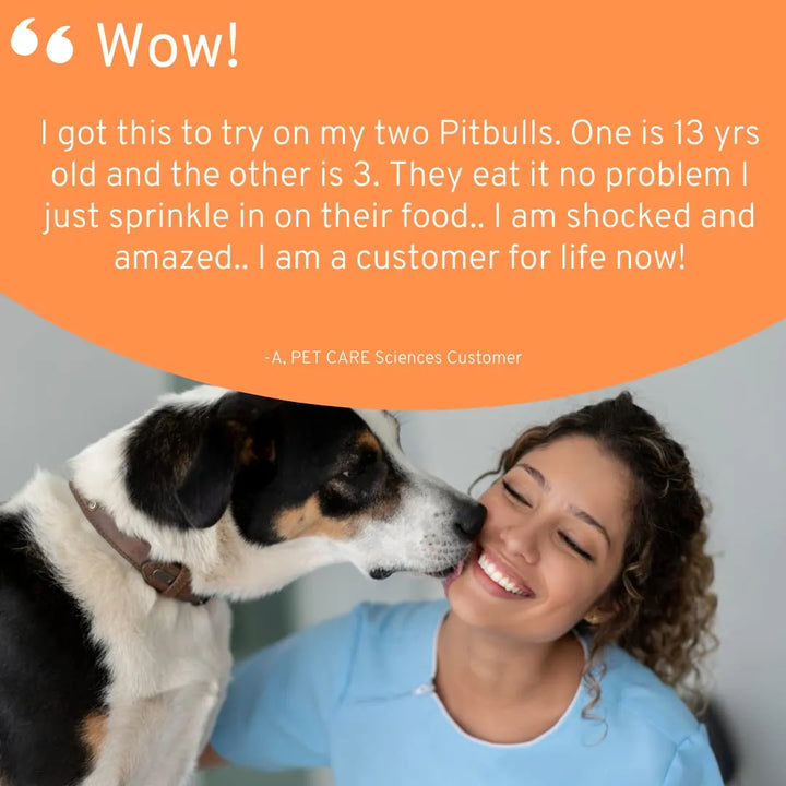 Imagina ver a tu compañero de cuatro patas lleno de vida otra vez, corriendo y jugando como antes. Este suplemento no solo es fácil de usar, sino que su delicioso sabor a tocino hará que tu perro lo adore desde el primer momento. No más batallas para darle sus vitaminas; simplemente mézclalo con su comida y listo.