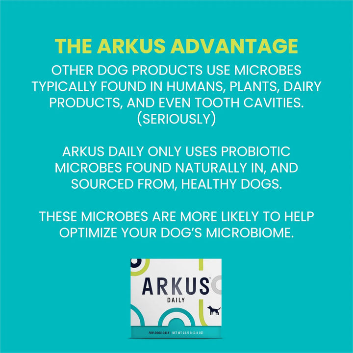 Los microbios vivos en Arkus: Clostridium hiranonis apoya una mejor salud intestinal Megamonis funiformis apoya una mejor digestión Enterococcus faecium apoya un sistema inmunológico fuerte. Clostridium hiranonis y Megamonis funiformis no se pueden encontrar en ningún otro producto para perros