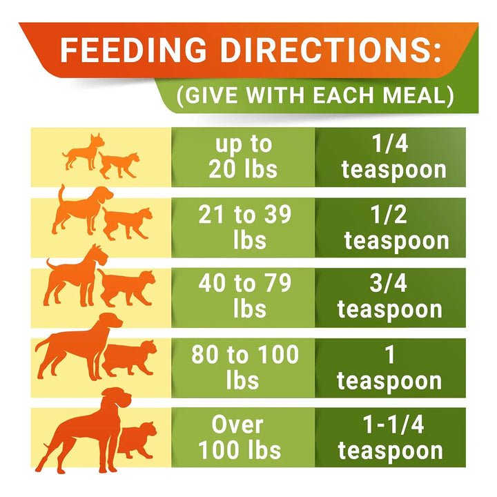 - Añade la dosis recomendada (indicada en el empaque) sobre la comida húmeda o seca de tu mascota.