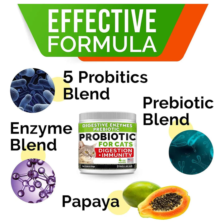 Los probióticos y prebióticos trabajan juntos para restaurar la flora intestinal de tu mascota, mientras que las enzimas digestivas ayudan a descomponer los alimentos de manera eficiente. Esto no solo alivia los síntomas inmediatos, sino que previene problemas futuros.