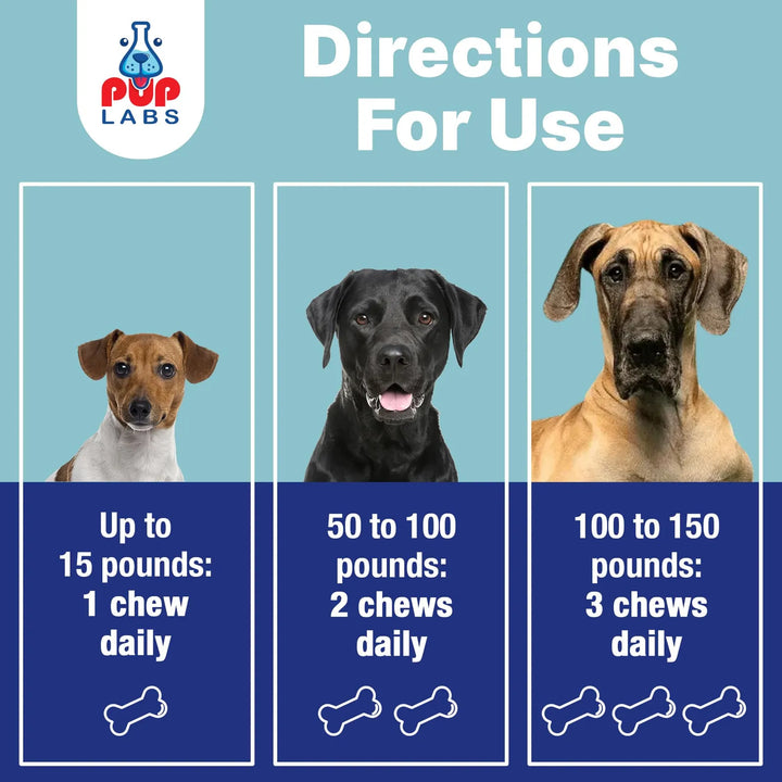 - Dosificación sencilla: 1 masticable para perros bajo 50 libras, 2 para los más grandes. 📏