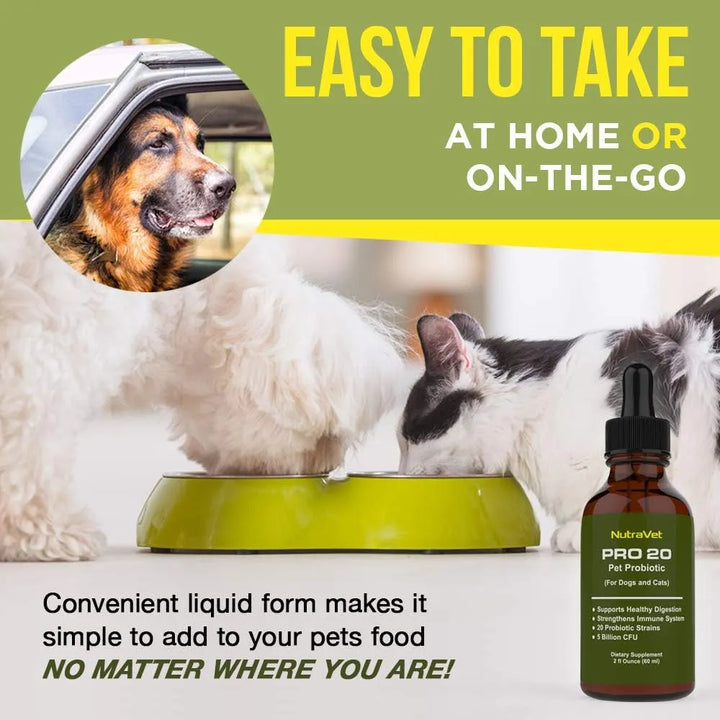 ¿Tu perro o gato sufre de gases, malestar estomacal o falta de energía? Imagina poder devolverle la vitalidad y alegría con un simple gesto. Nuestros Probióticos Naturales para Perros y Gatos están diseñados para equilibrar su sistema digestivo y fortalecer su bienestar desde la primera dosis. Con 20 cepas probióticas y enzimas digestivas 100% naturales, cada gota es un paso hacia una vida más saludable y feliz para tu compañero peludo.