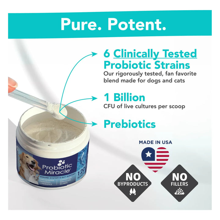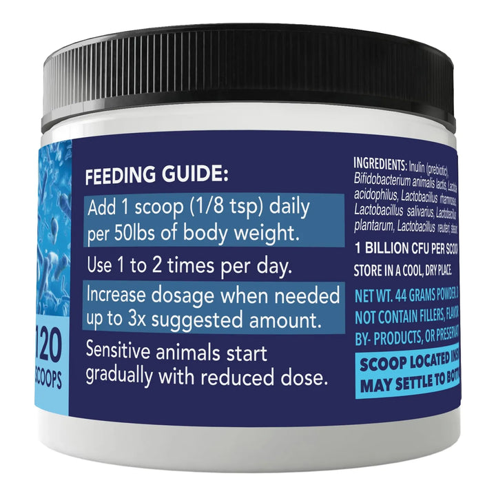 Este probiótico no es cualquier suplemento. Con 120 mil millones de UFC por frasco, está clínicamente probado para combatir problemas digestivos, alergias y los efectos negativos de los antibióticos. Veterinarios lo recomiendan porque funciona: ayuda a regular las heces, reduce la picazón y promueve una digestión saludable desde la primera dosis. Ideal para cachorros, gatitos y mascotas adultas, es el aliado perfecto para una vida más feliz y activa.