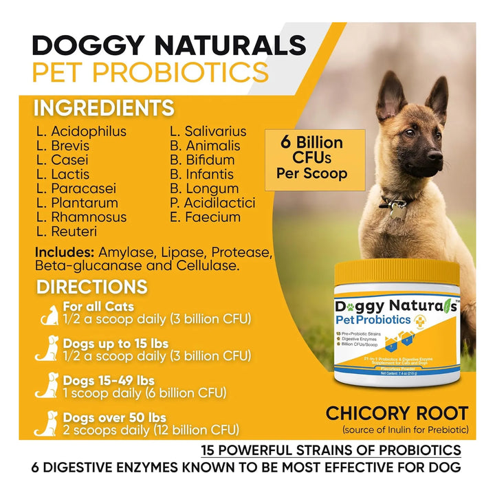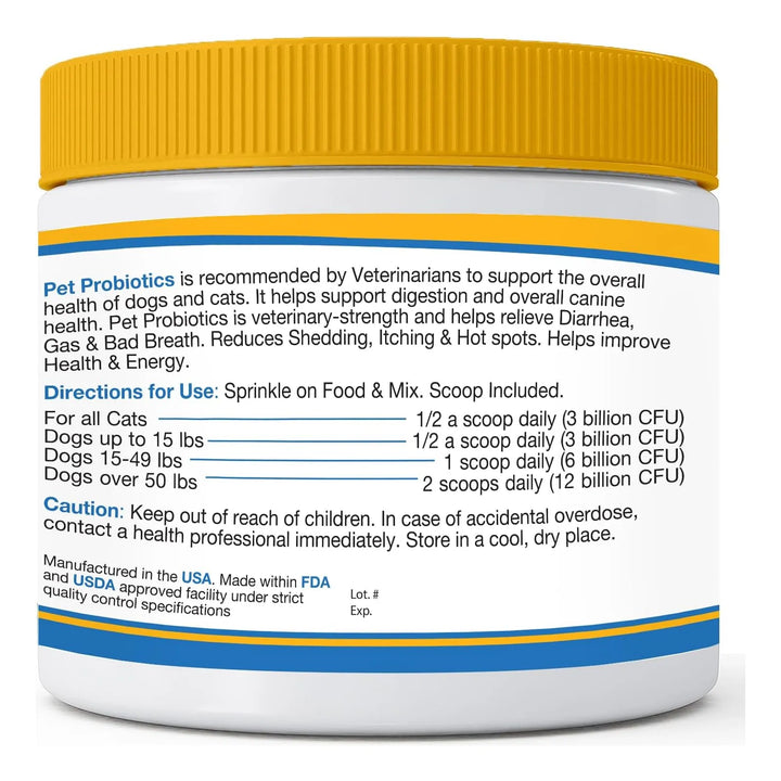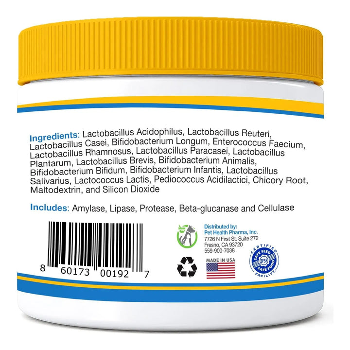 ¿Tu perro o gato sufre de problemas digestivos, alergias o falta de energía? Los probióticos para mascotas de máxima fuerza con 15 cepas y prebióticos orgánicos son la solución que estabas buscando. Diseñado por expertos veterinarios y fabricado en Estados Unidos, este producto no solo mejora la flora intestinal, sino que también fortalece el sistema inmunológico de tu peludo.