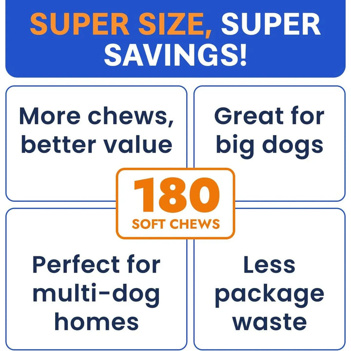 - Contiene 180 masticables para tratamiento prolongado 😊